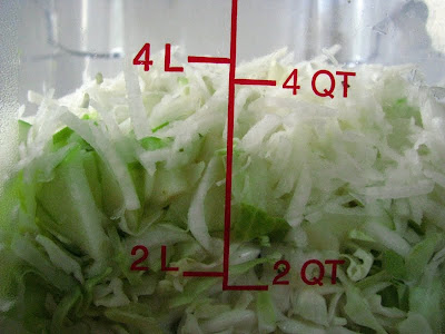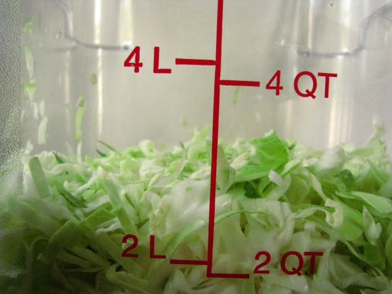 finished amount was about 1 1/2 quarts kraut.