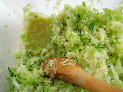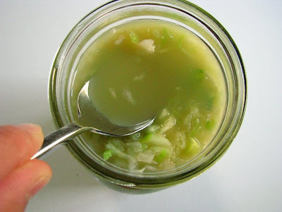 One of the most interesting things about lacto-fermentation in particular, is that nearly anything can be given the inoculation of whey (and if you are dairy-free, salt can usually stand in unless fruit is present) and be transformed into bubbling, probiotic goodness. The slaw from our class Monday night was delicious right away, but in three day's time, I suspect it will be even more complex.